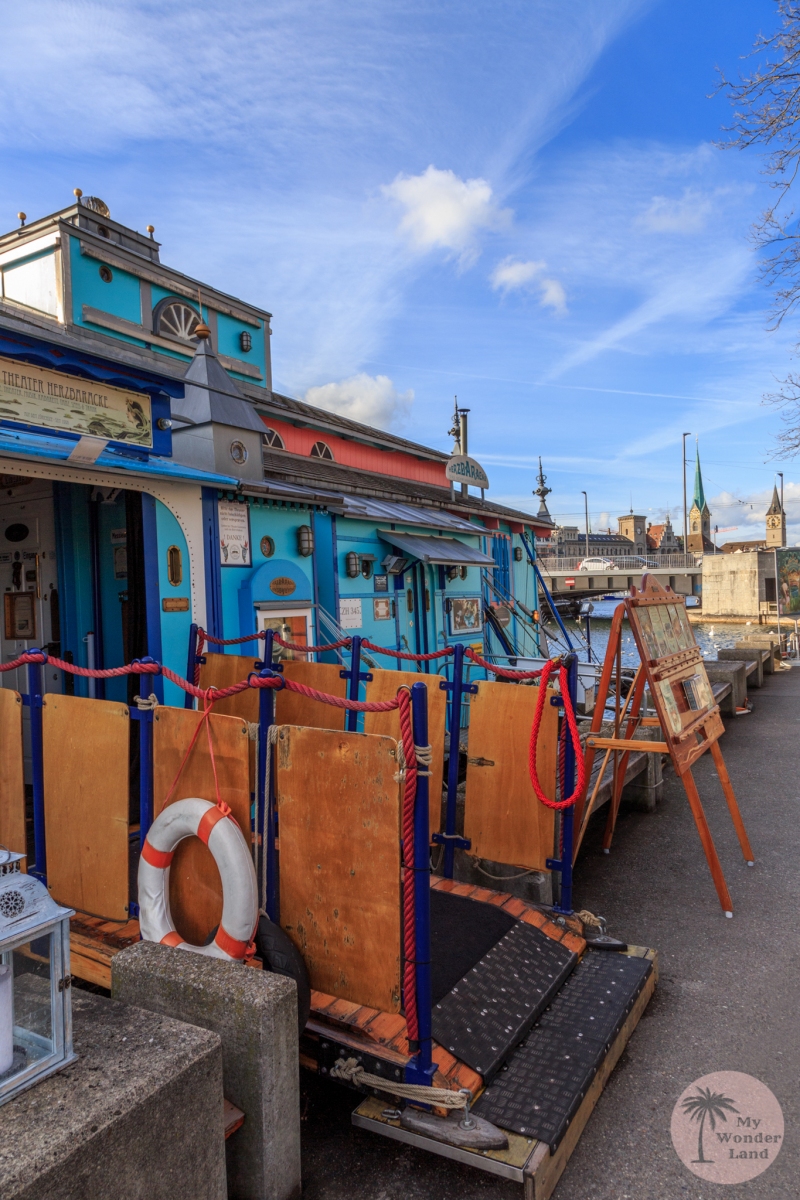 Die Herzbaracke ist ein schwimmendes Salon Theater, welches sich immer für eine gewisse Zeit an vier verschiedenen Anlegestellen des Zürichsees befindet.