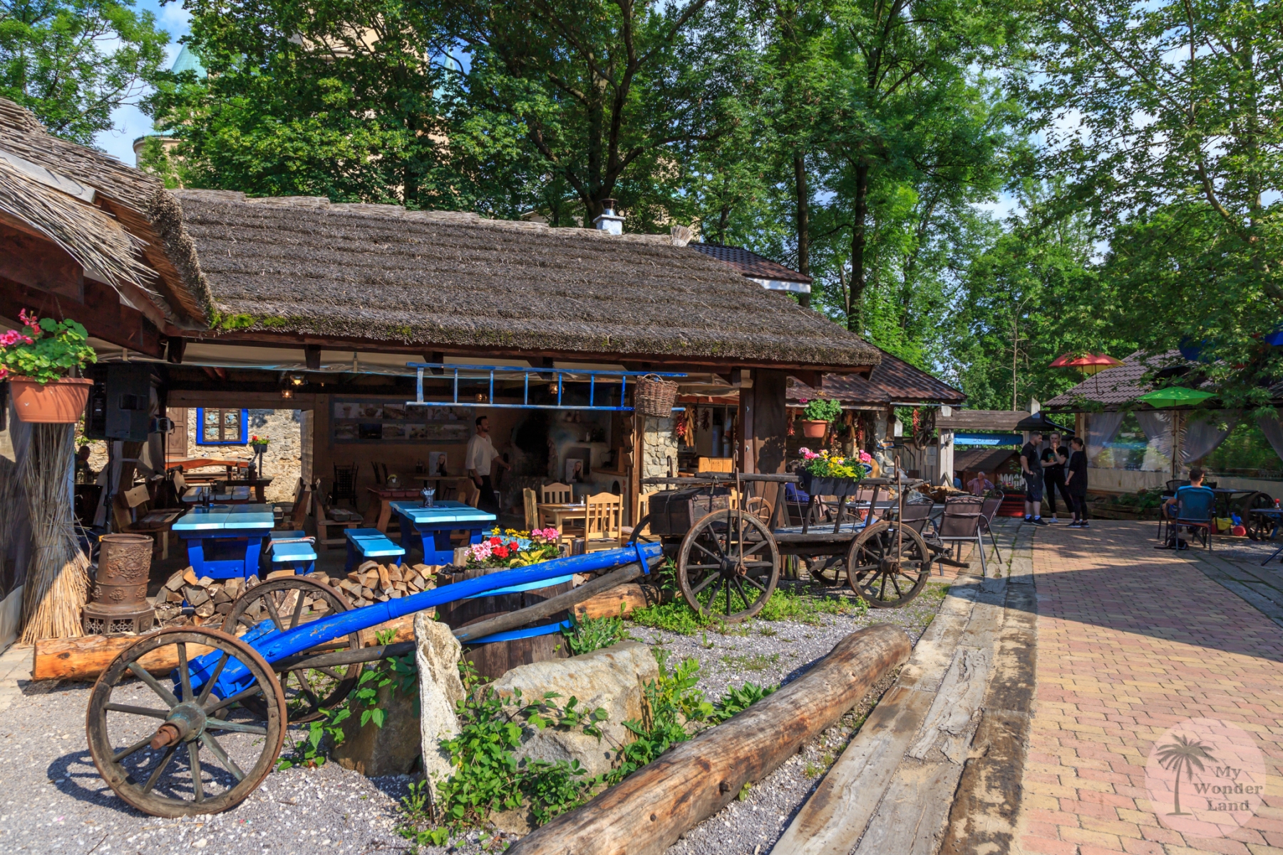 - From the parking lot towards the entrance there`s a small, kind of tourist village. There`s also a restaurant and a cafe.