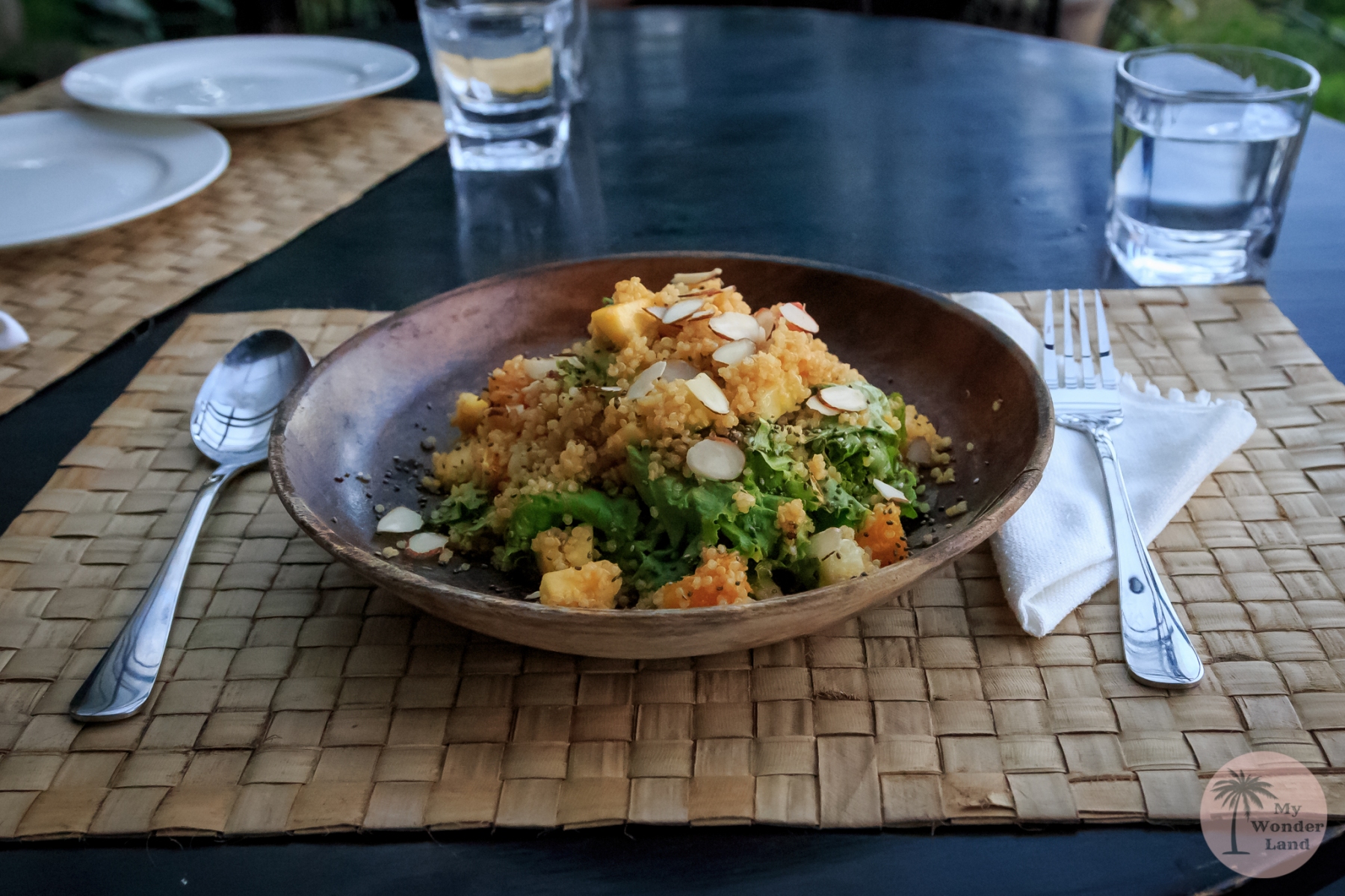 After we climbed the numerous stairs that lead up the hill from the back part of the beach, we were speechless. Not only the view itself was something we hadn’t expected, but also the extremely extraordinary interior. You immediately notice that the wife of the owner couple has learned interior designer.