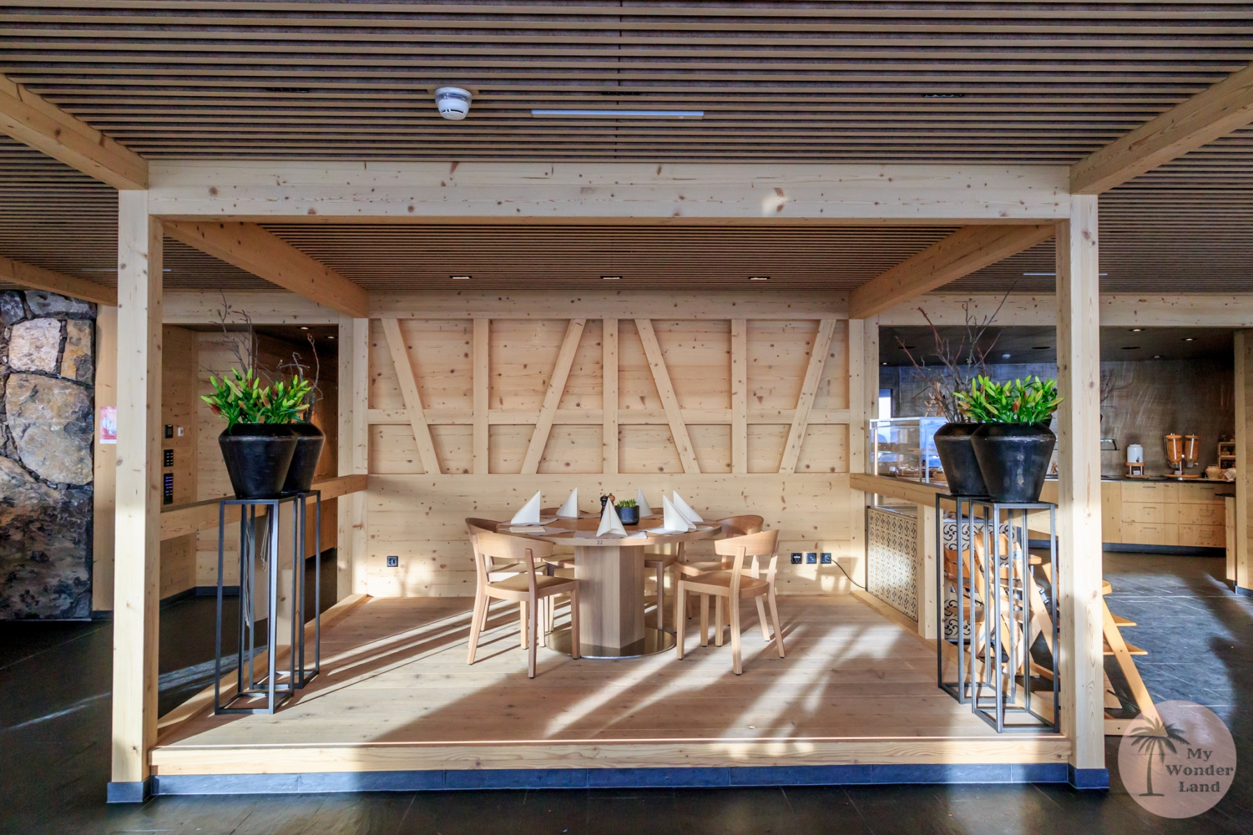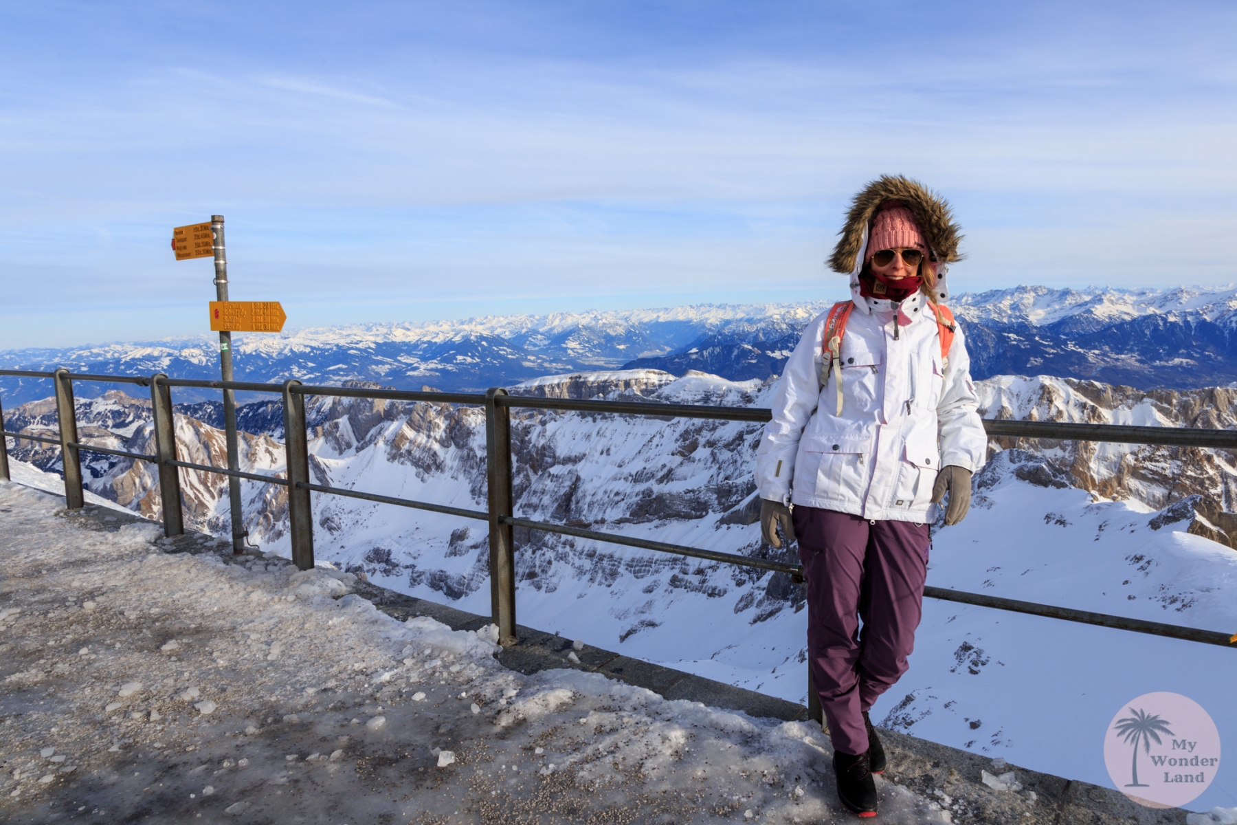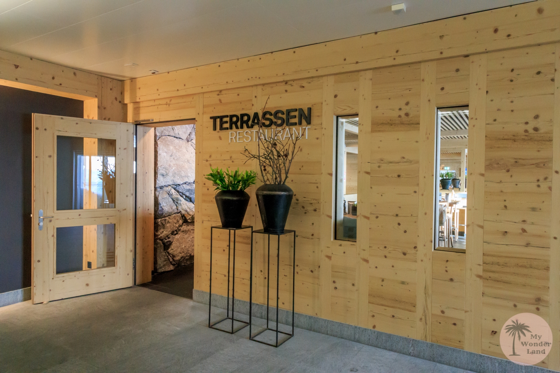 Oh man, a biting wind was blowing up there, so after about 10 minutes we went back to the cozy warmth of the very modern furnished summit restaurant.
