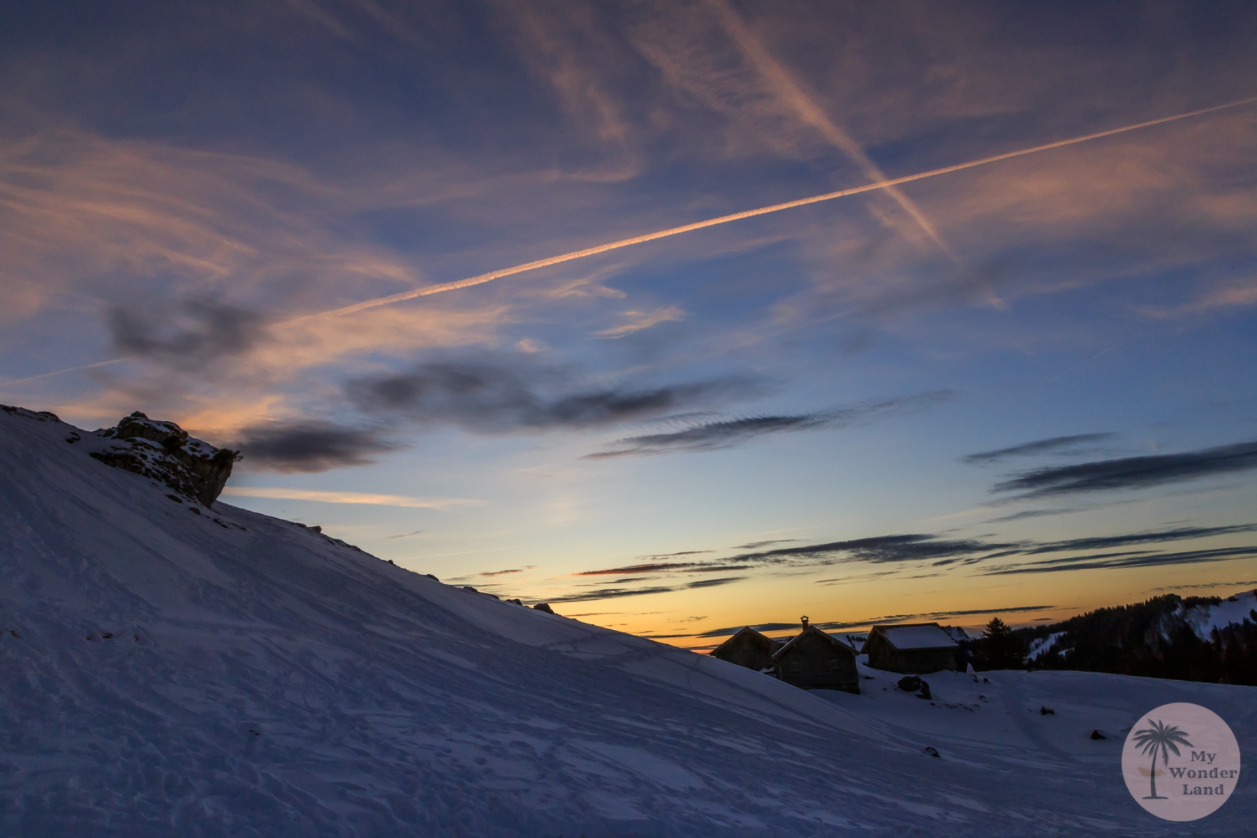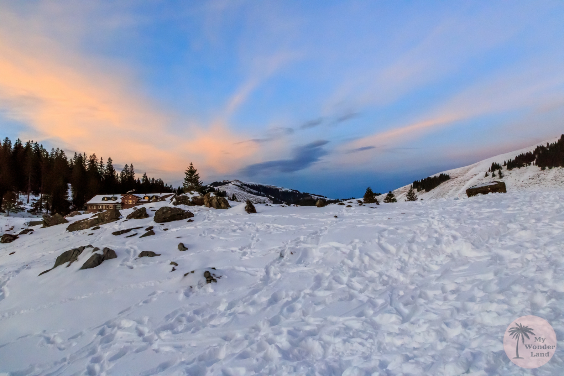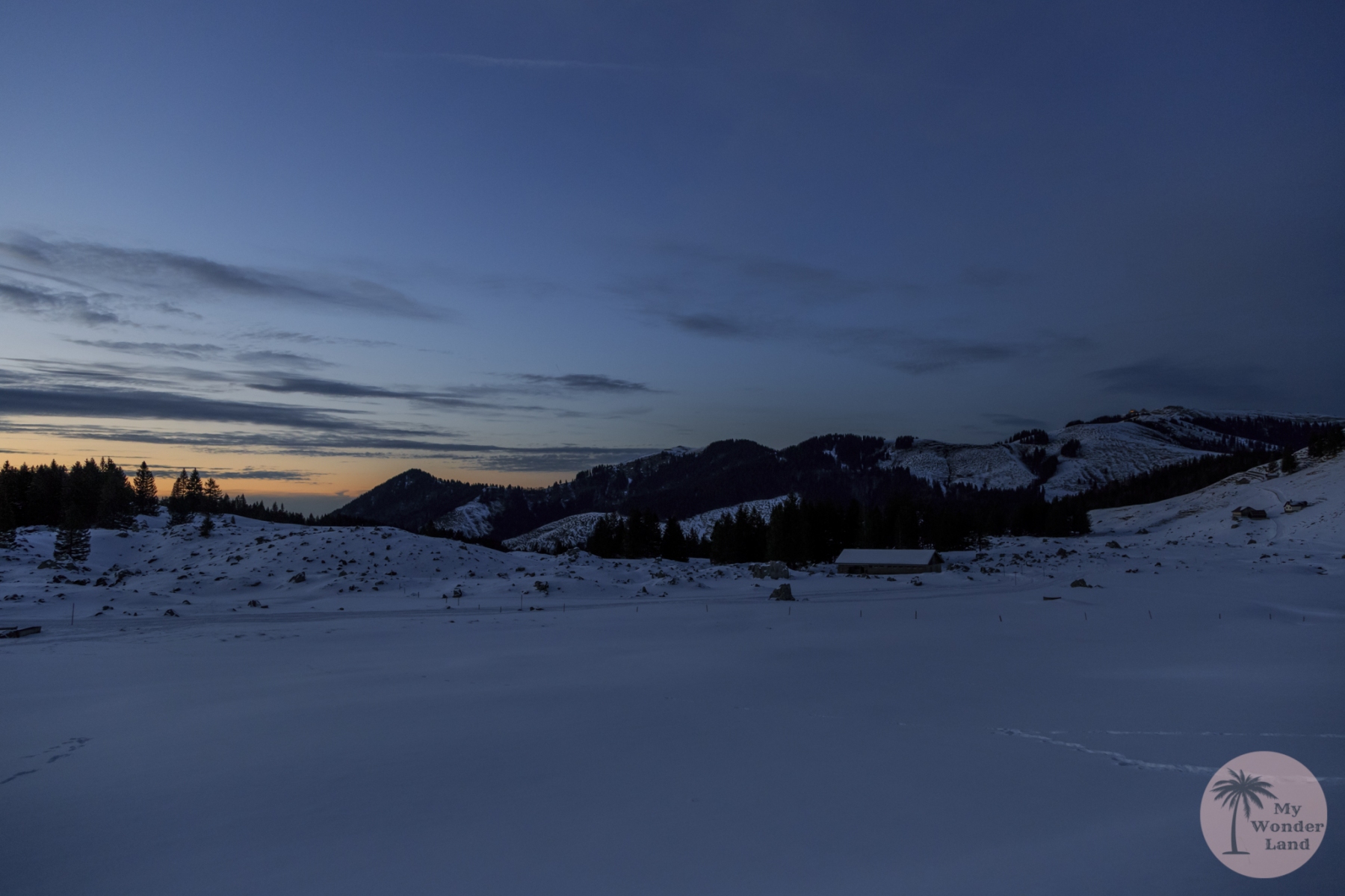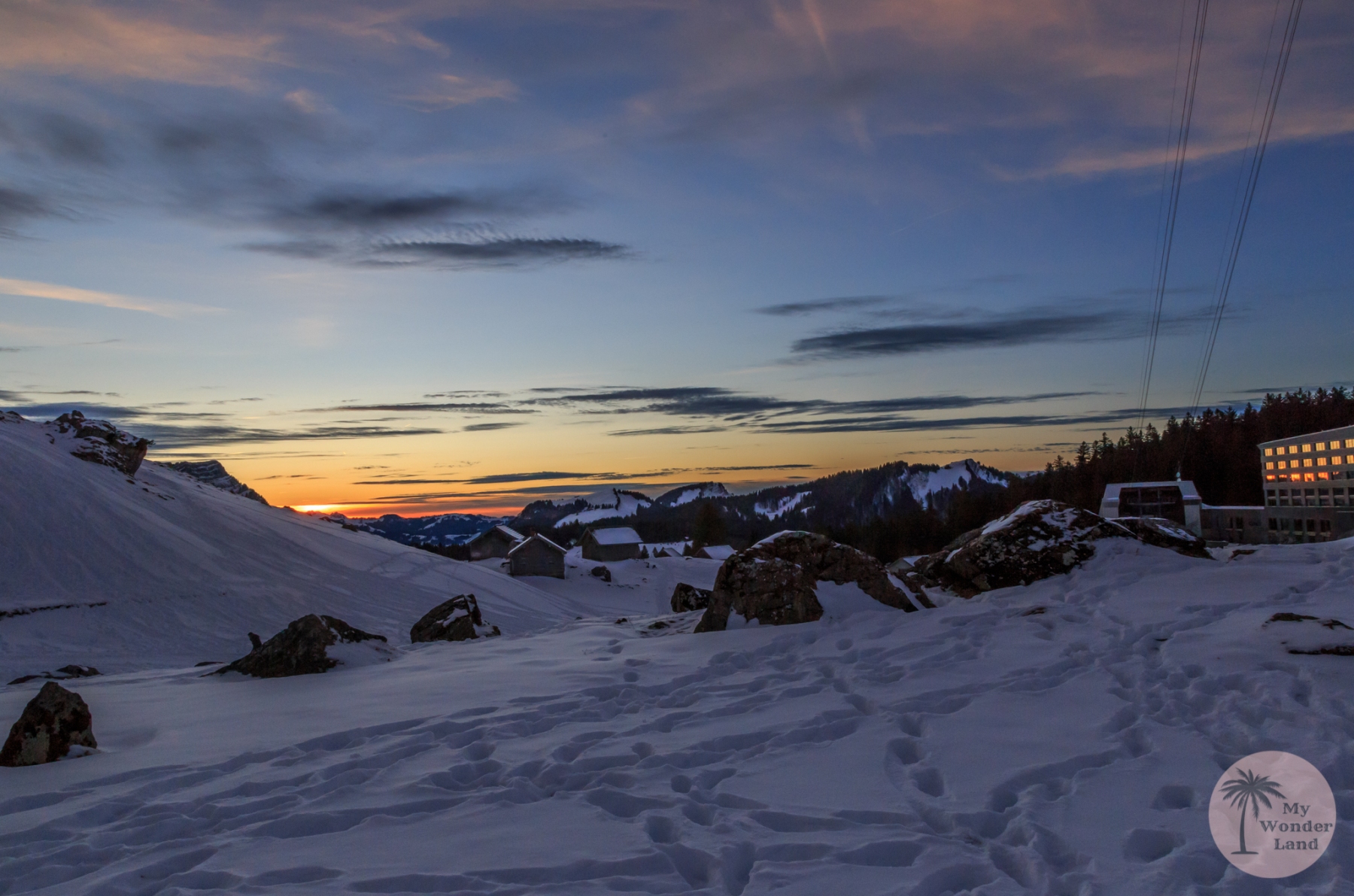 Actually, we wanted to go sledding somewhere, but since the sledding runs were closed in many places because of too little snow, we spontaneously decided to go on a day trip to the Säntis. When I was looking for a short hike on Schweiz Mobil, I discovered the latern path and was immediately enthusiastic about the idea. I imagined something very special, especially since there was by coincidence a full moon at that time. Perfect timing I would say. 🙂