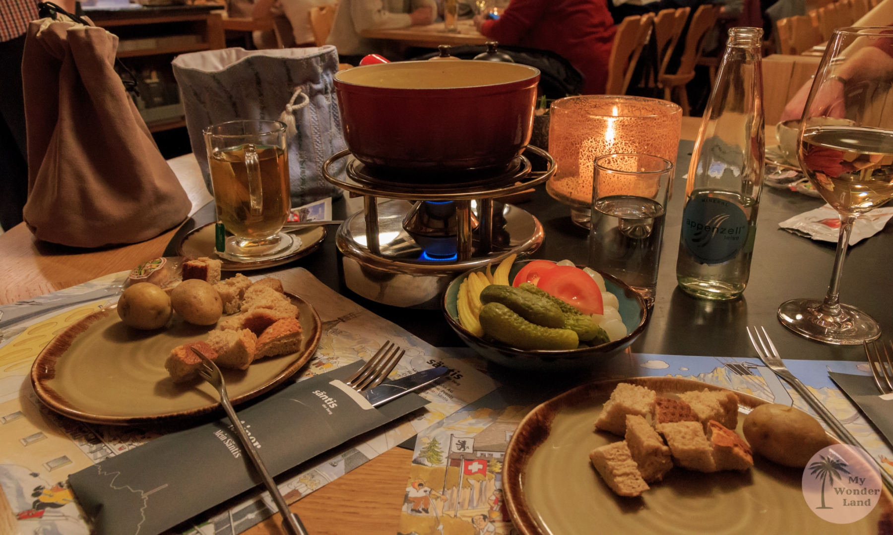 At home, I had already tried in vain to make a reservation for a fondue in one of the three restaurants. As we were very much in the mood for it, we tried it at the end of our walk on good luck in the restaurant Passhöhe anyway. Lo and behold, the round table was kindly put at our disposal. This restaurant invites very much to a comfy get-together. The set up waitress had the house full perfectly under control and the recent and super airy fondue was a feast.