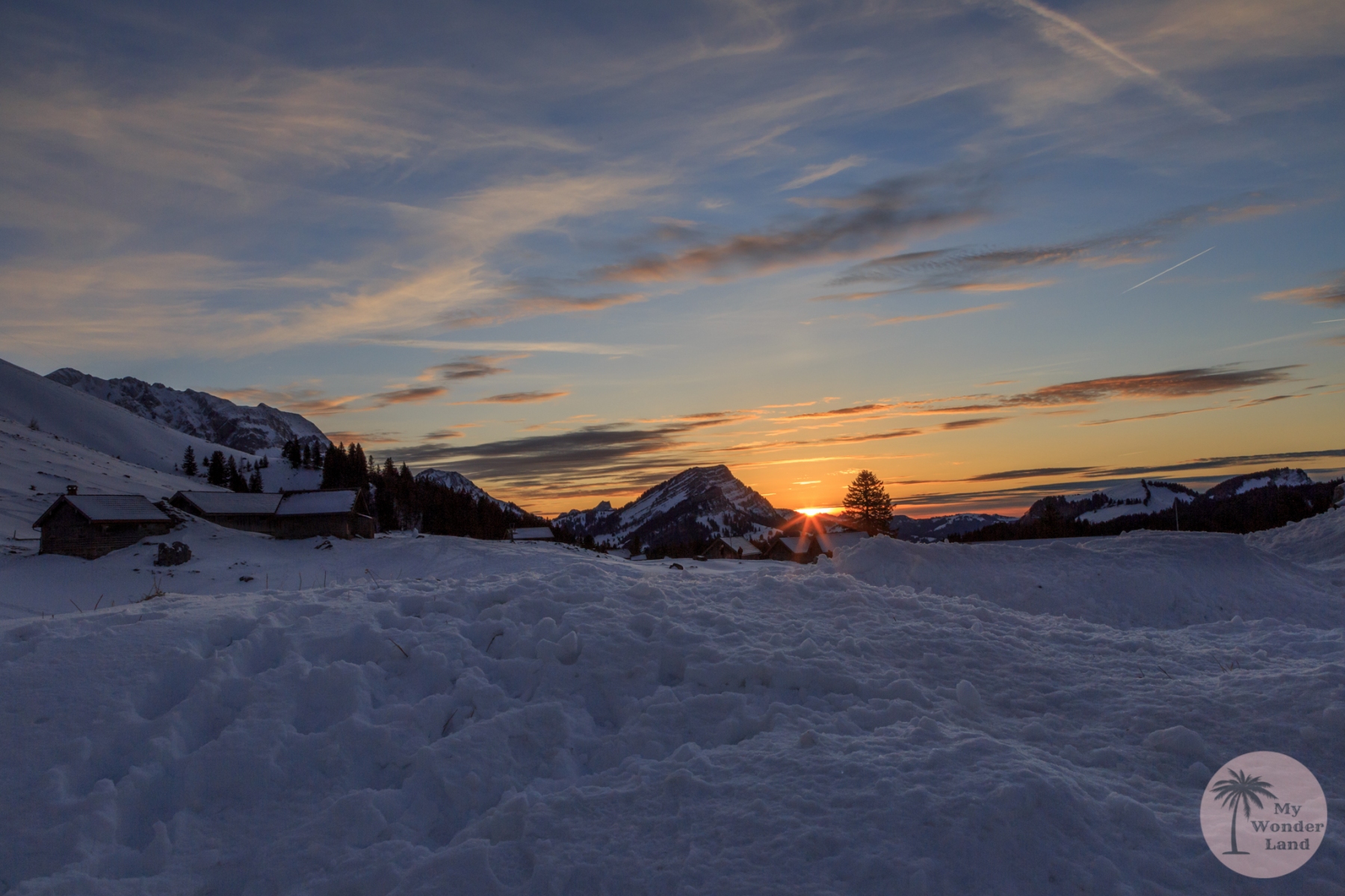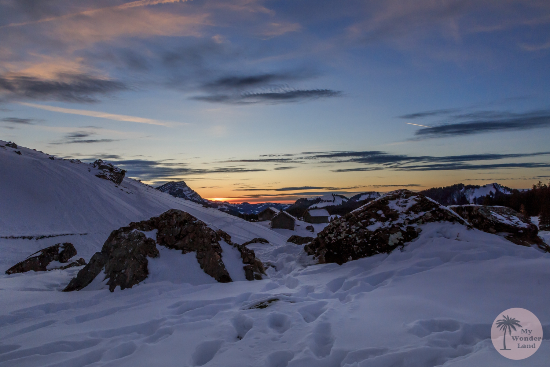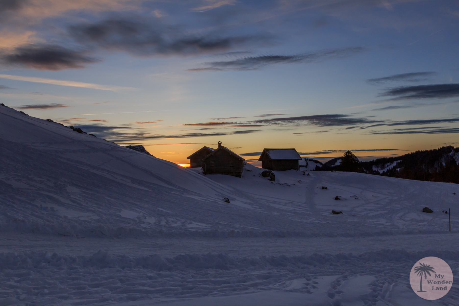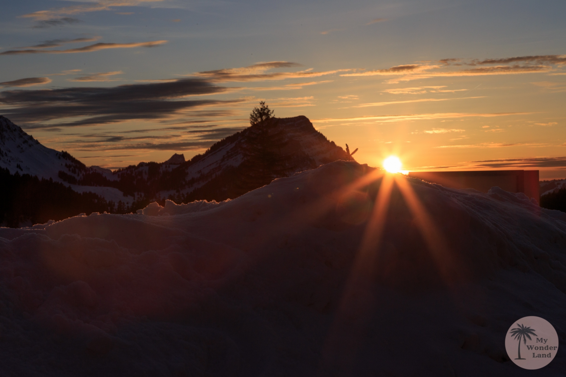 Afterwards we had to wait a bit longer for the sun to set. But it was more than worth it. It was simply beautiful, how the glowing ball disappeared behind the snow hills.