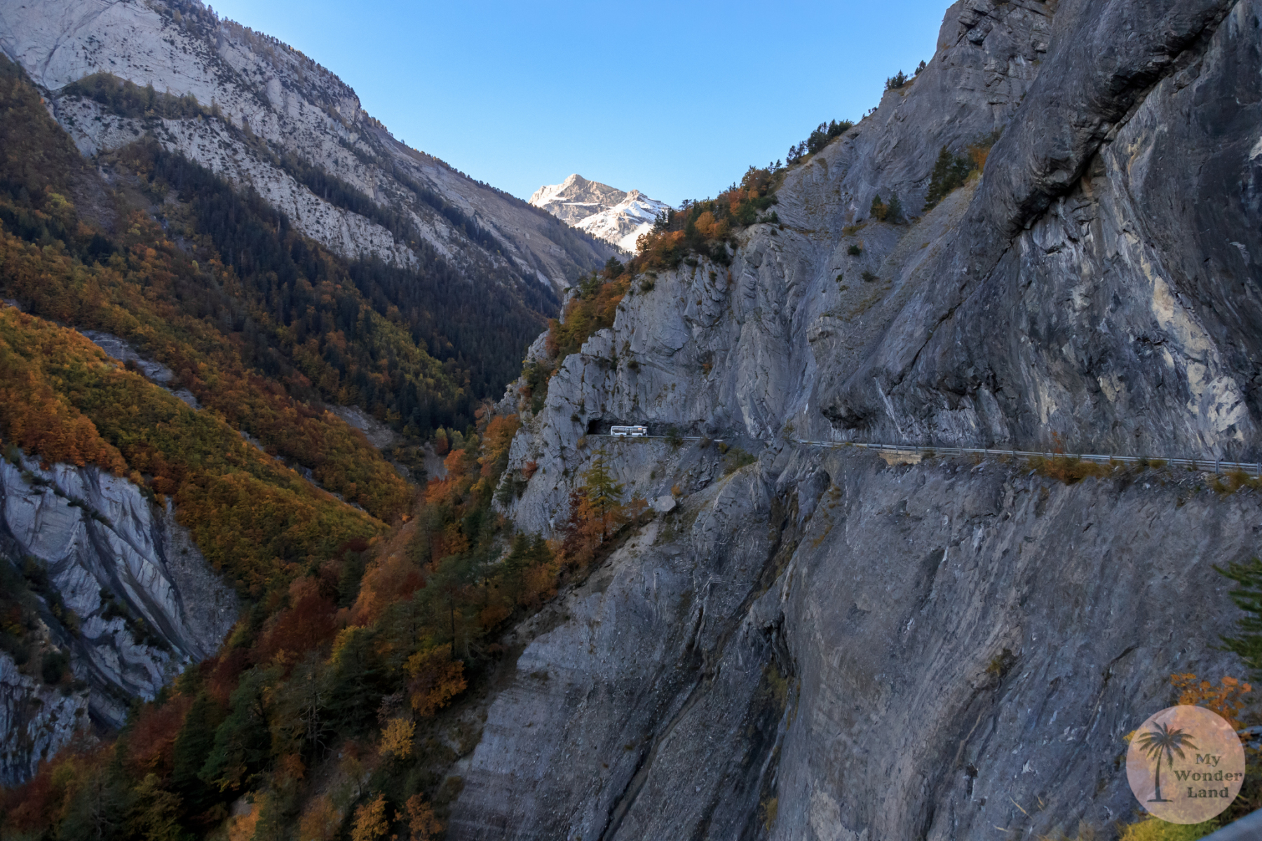 Nur schon die Anfahrt durch die kurvenreiche Strasse entlang der Schluchten der Lizerne ist ein Highlight! Da es bei unserer Hinfahrt bewölkt und die Felsen noch nebelverhangen waren, bot sich uns eine mystische Landschaft. Zu gerne wollte ich diese faszinierte Gegend mit den vielen herbstlich gefärbten Bäumen fotografisch festhalten. Doch das war gar nicht so einfach. Denn die Strassen sind schmal, sehr schmal und Möglichkeiten um kurz anzuhalten gibt es nur wenige. Am eindrücklichsten fand ich die Tatsache, dass man während einer längeren Zeit unter den Felsen hindurch fährt und dabei zahlreiche (relativ kurze) Tunnel durchquert. Der Kontrast der Dunkelheit in den Tunnels und der Herbstlandschaft, die uns beim Verlassen ebendieser augenblicklich wieder in ihren Bann zog, hinterliess definitiv einen bleibenden Eindruck!