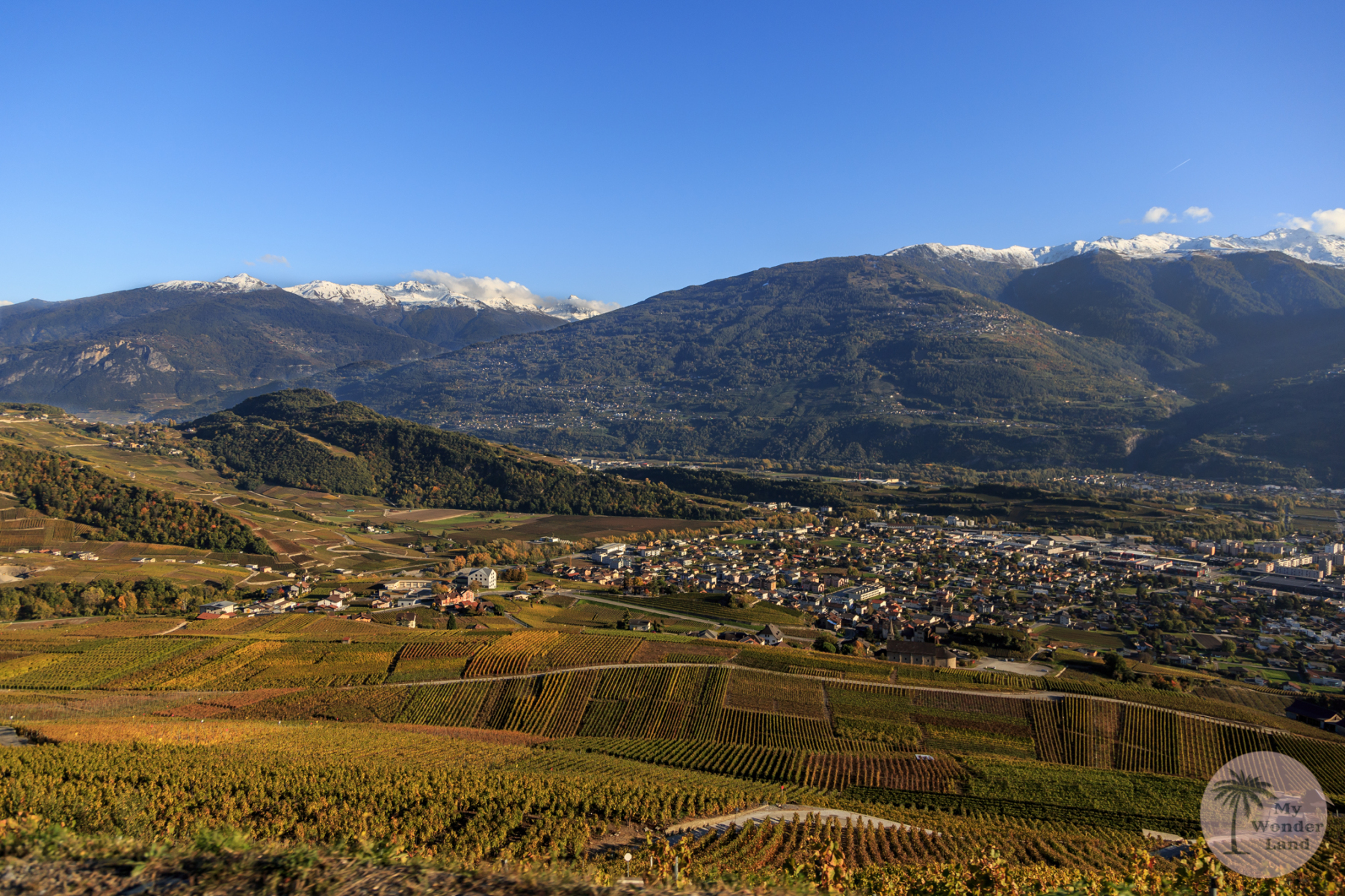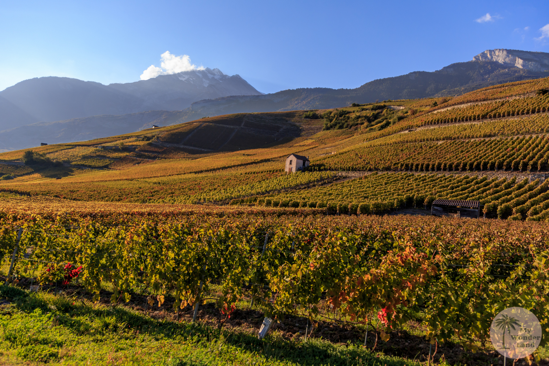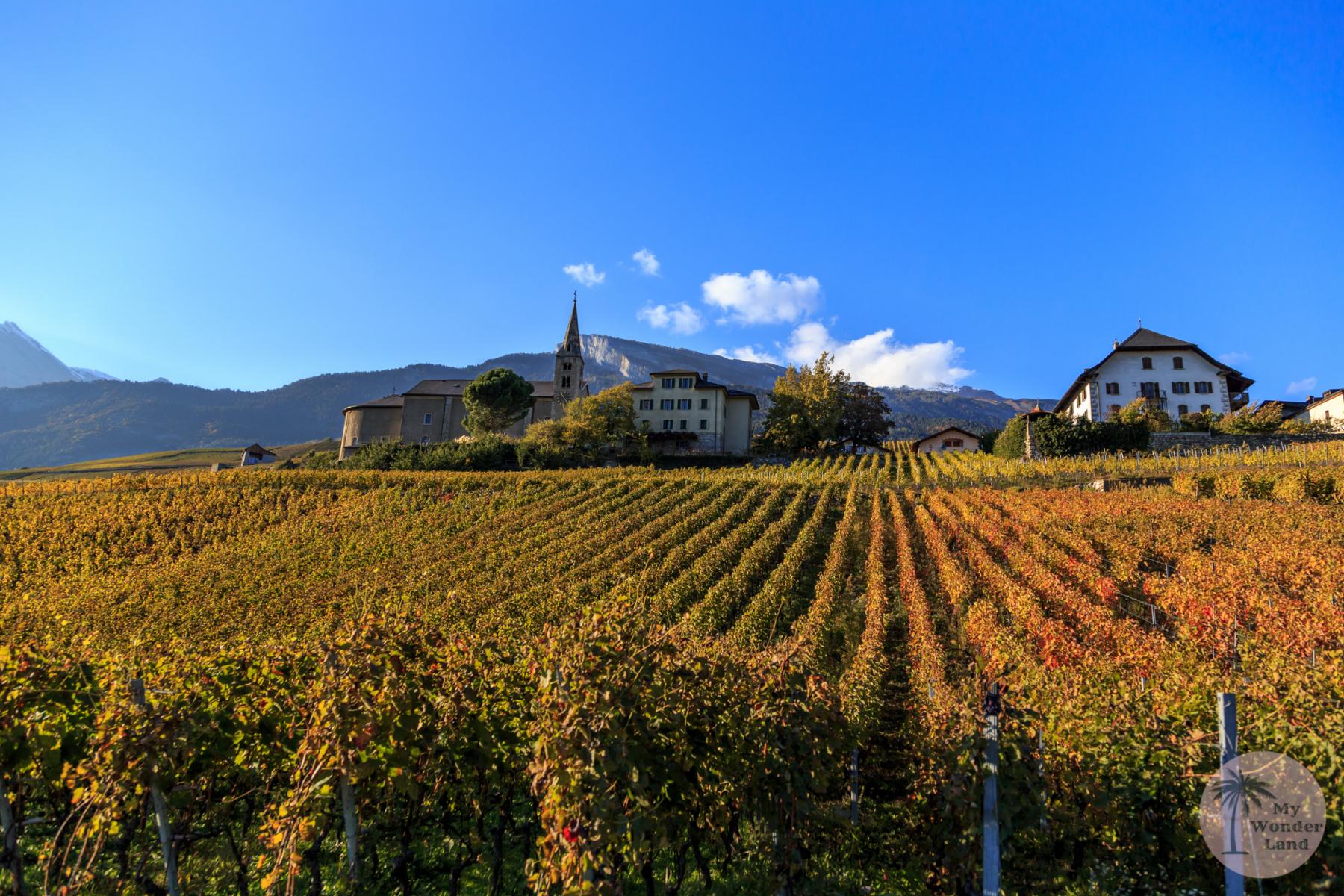 Bei unserer Rückfahrt erlebten wir die Fahrt völlig anders, als bei der Hinfahrt. Der Himmel war nun blau, die Sonnenstrahlen der beginnenden Golden Hour verpassten der Gegend einen goldenen Mantel. Zu dieser wunderschönen Herbststimmung trugen aber auch die Rebberge bei, die wir auf unserem Rückweg zur Autobahn passierten.