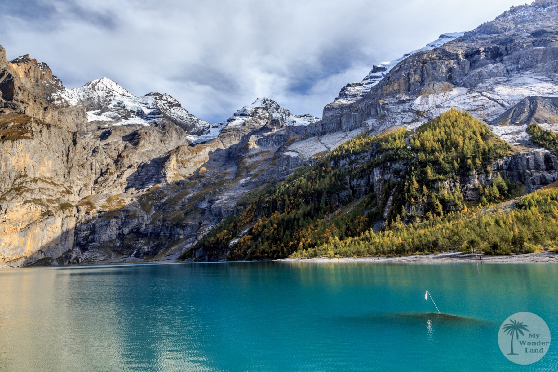 • Im Herbst hat es angeblich weniger Nebel beim Oeschinensee als im Sommer. Aber ist meiner Meinung nach Glückssache. Auf jeden Fall hat`s ab Spätsommer mehr Wasser im See, was auf Fotos viel schöner aussieht.
